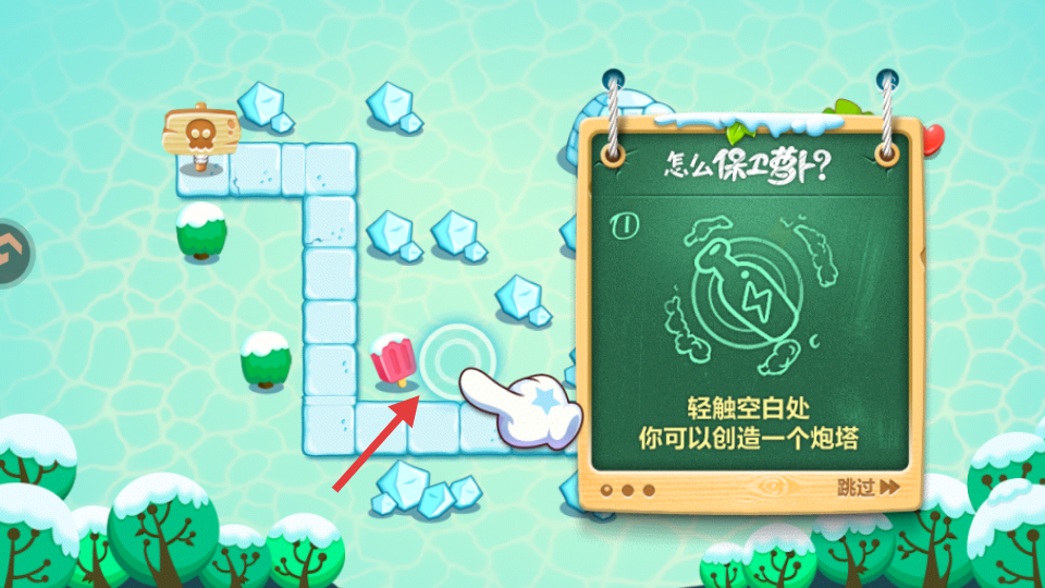 除此之外,攻击地图场景的冰屋、冰块,除了可以获得金钱之外,还会随机出现炮塔,利用好的话,也是游戏的一大助力。